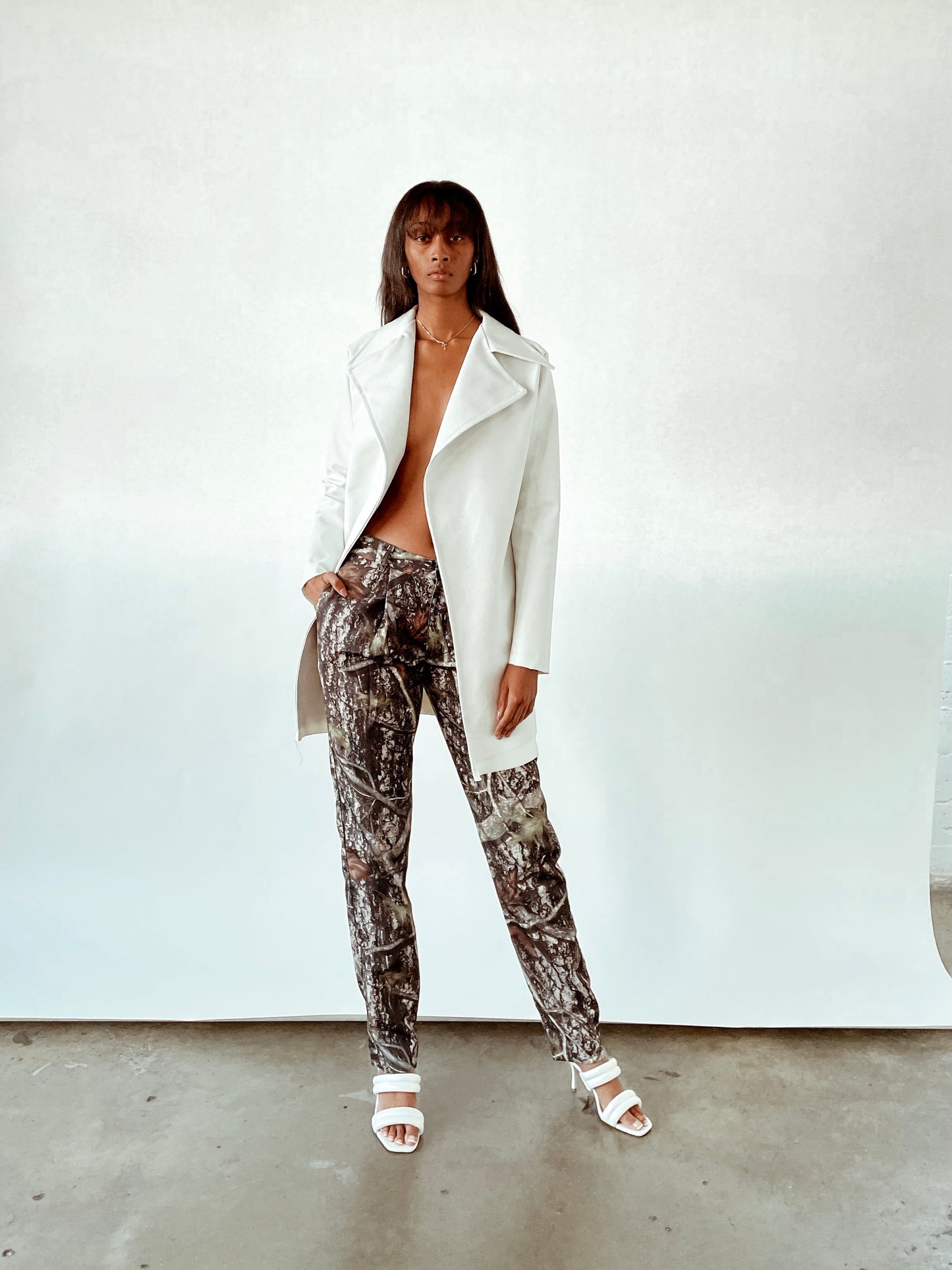 DEVON is a versatile gender fluid faux leather trench coat.